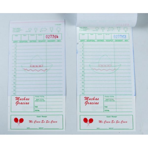 We print our guest checks with black ink for clear and legible writing. The number of lines on the check can also be customized to fit the needs of different businesses.